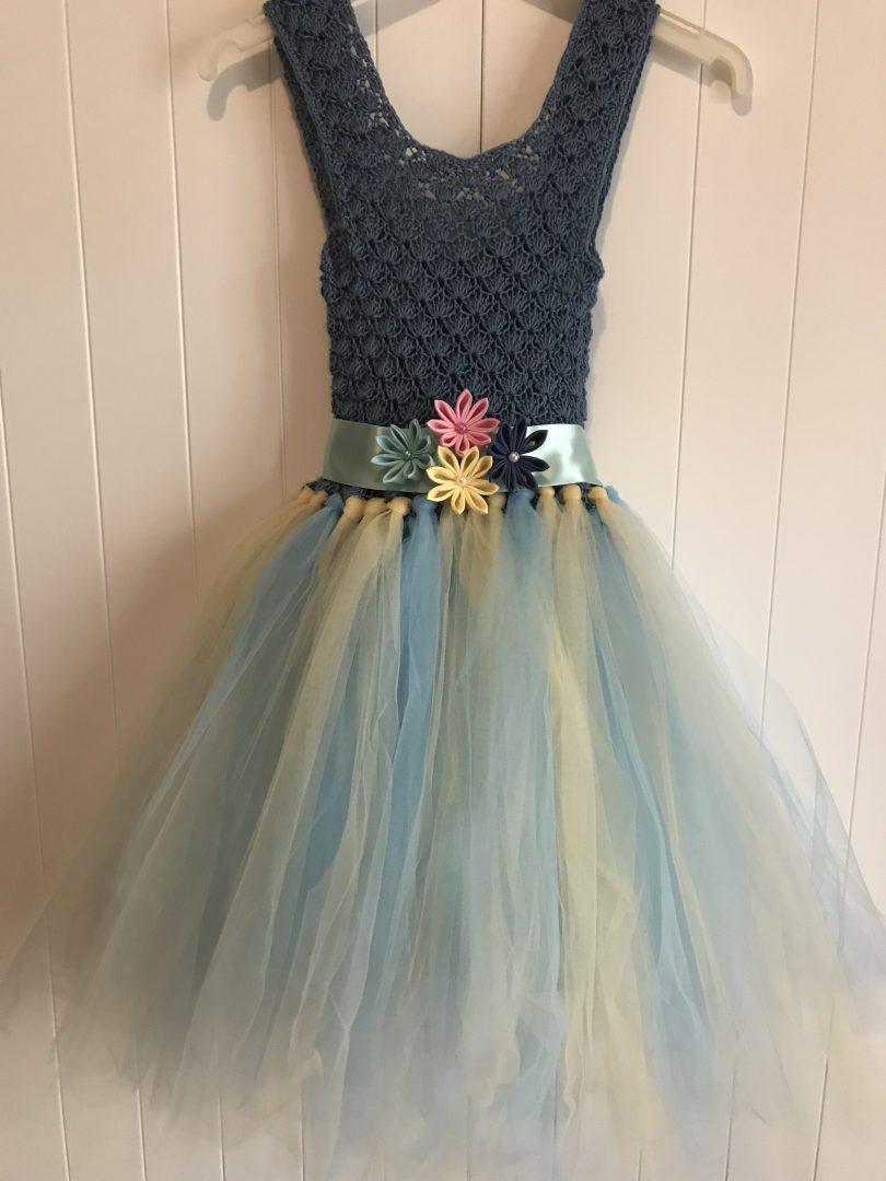 Vestido Dana: Top azul/Tul blanco